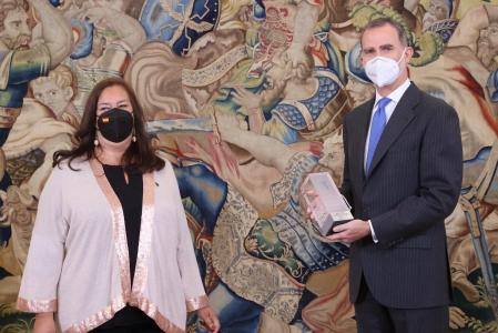La AVT ha hecho entrega del galardón correspondiente a sus premios de 2019, y que tuvieron que posponerse debido a la crisis sanitaria de la Covid-19, en un acto donde Maite Araluce ha agradecido en nombre de todas las víctimas que Felipe VI haya aceptado este reconocimiento, por el que se sienten «profundamente honrados».