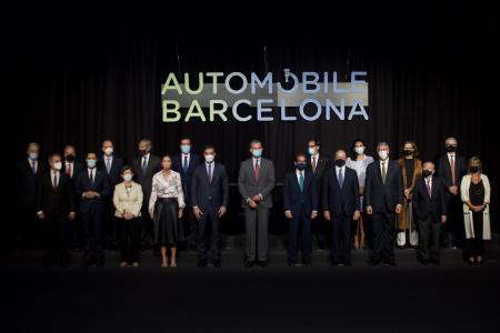 El rey Felipe VI y el presidente del Gobierno, Pedro Sánchez, han llegado este jueves al salón del Automóvil Barcelona, donde se han hecho una fotografía de autoridades en la que también ha participado el conseller de Empresa y Trabajo de la Generalitat, Roger Torrent.