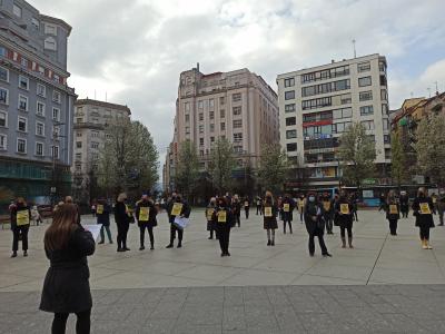 La protesta, convocada a nivel nacional en un centenar de ciudades, ha contado en la capital cántabra con la participación de casi un centenar de profesionales repartidos por la plaza del Ayuntamiento, guardando la distancia de seguridad y con carteles reivindicativos.