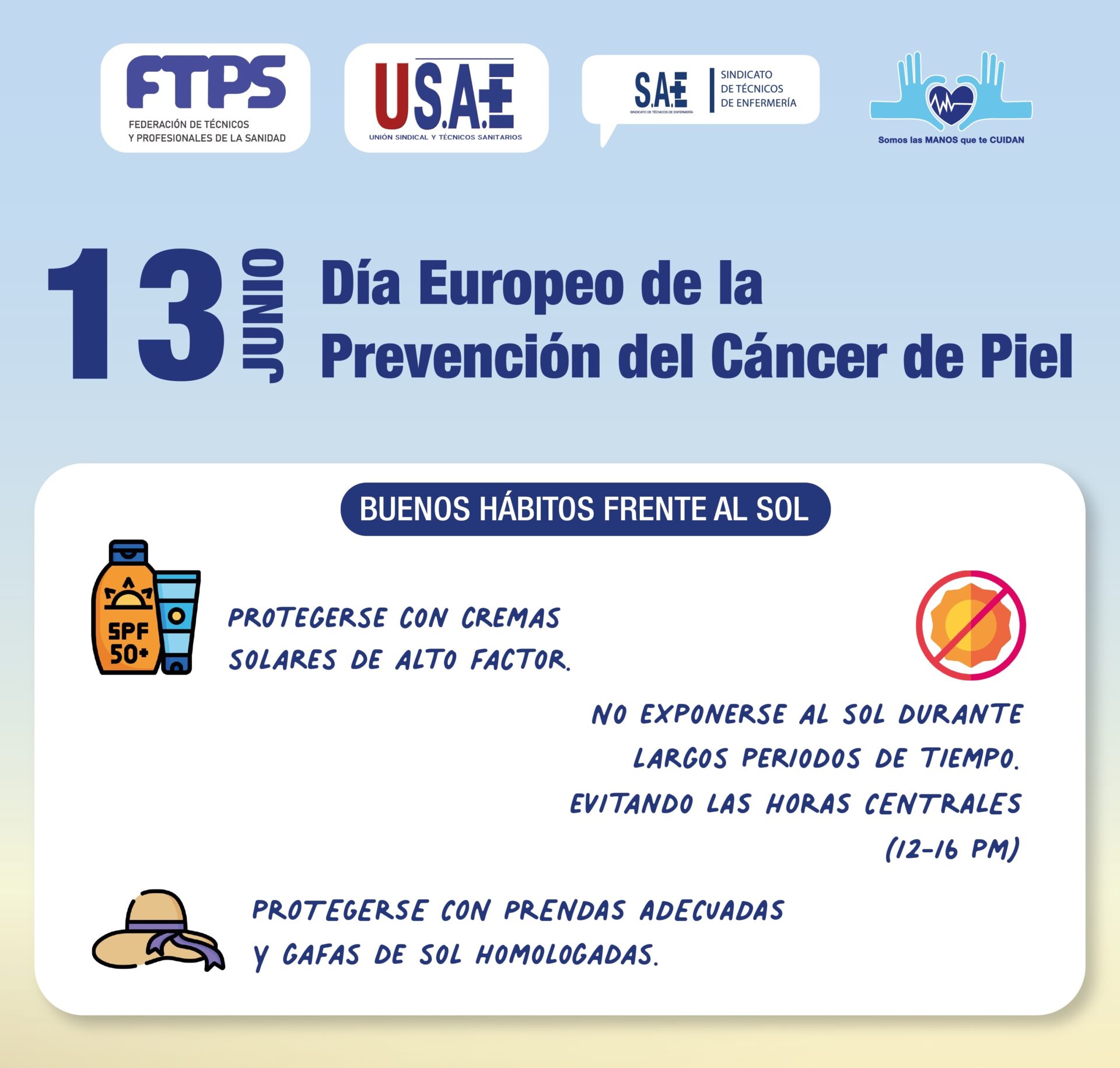 El Sindicato de Técnicos de Enfermería recuerda la importancia de protegerse para prevenir el cáncer de piel