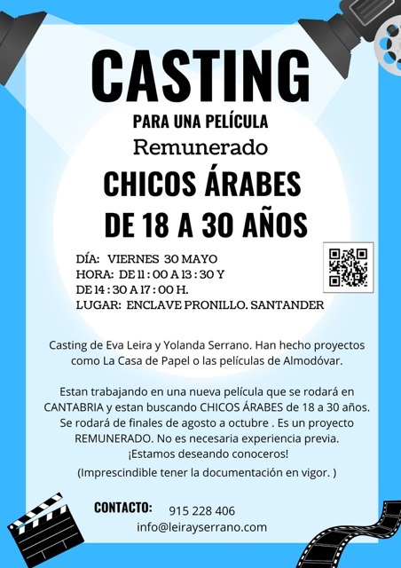 En concreto, el actor y director cántabro Adrián Alonso, que es la persona de contacto para la prueba que se celebra en Santander, ha detallado que buscan a chicos árabes de 18 a 30 años y sin necesidad de tener experiencia previa.