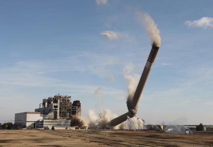 Endesa procede a la voladura de la chimenea de la Central Térmica de Andorra (Teruel), de 343 metros de altura
