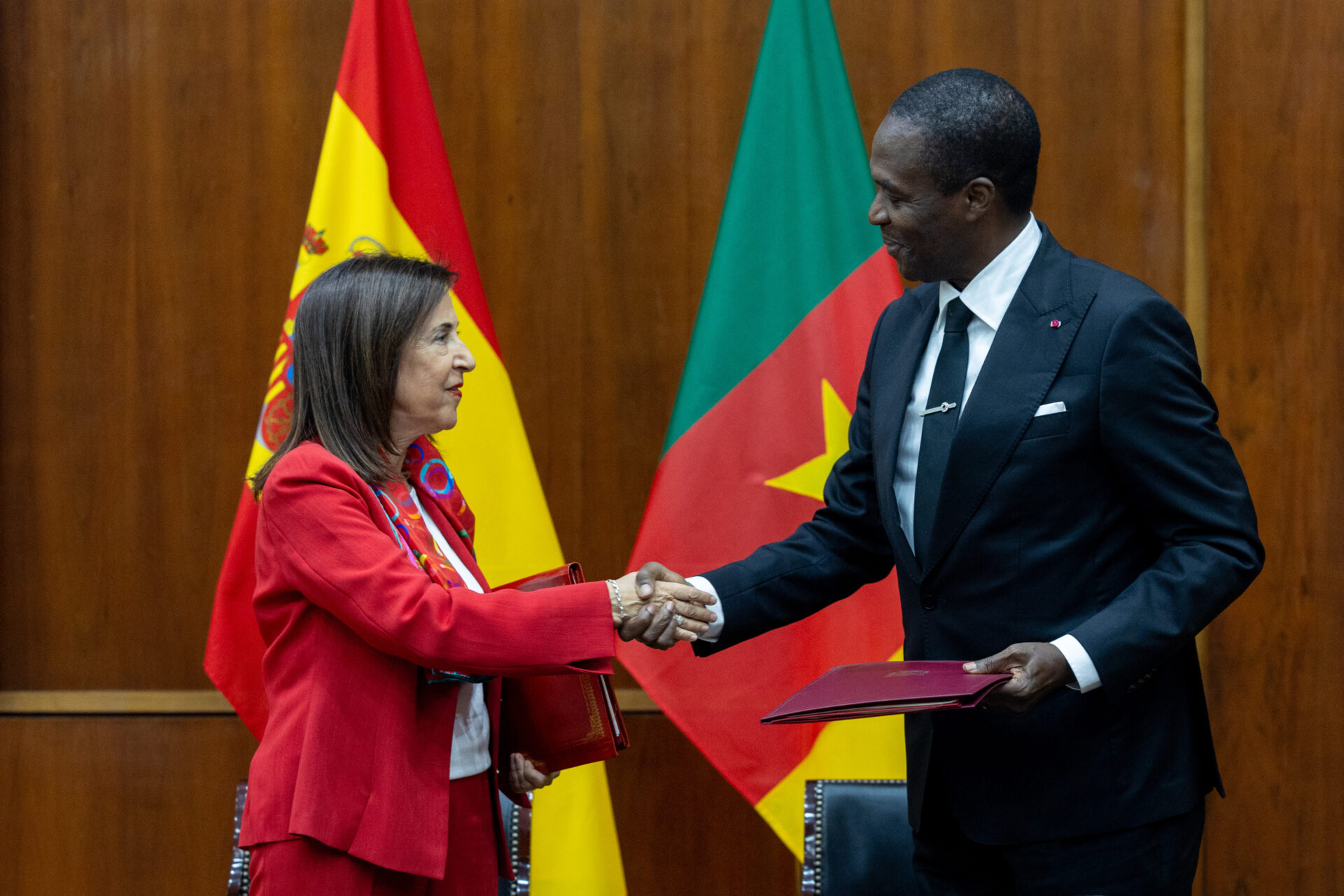 La ministra de Defensa, Margarita Robles, y su homólogo de Camerún, Joseph Beti Assomo, han firmado este miércoles un acuerdo marco de cooperación para intensificar las actividades en materia de defensa entre ambos países.