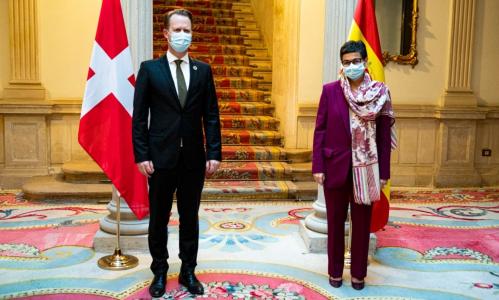 España y Dinamarca han reforzado este miércoles sus relaciones bilatelares con un encuentro entre la ministra de Asuntos Exteriores, Unión Europea y Cooperación, Arancha González Laya, que ha recibido a su homólogo danés, Jeppe Kofod, en el Palacio de Viana en el que han constatado la buena sintonía en los grandes ejes de política exterior.