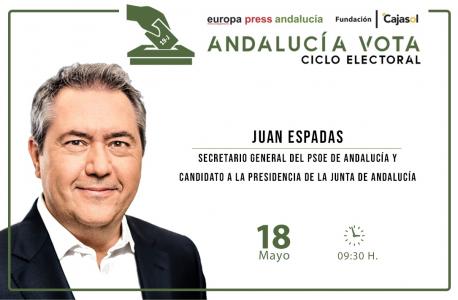 El secretario general del PSOE-A, Juan Espadas, abre este miércoles 18 de mayo en Sevilla el ciclo de encuentros informativos que organiza Europa Press Andalucía en colaboración con la Fundación Cajasol con los candidatos a la Presidencia de la Junta de los principales partidos y coaliciones que concurren a las elecciones autonómicas del próximo 19 de junio.