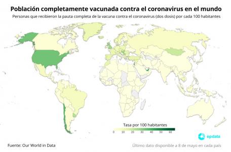 Mapa de población completamente vacunada contra el coronavirus en el mundo