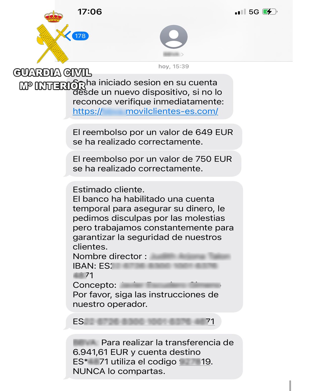 La Guardia Civil recuerda que los bancos no remiten sms con enlaces para introducir las credenciales de la banca online. Tampoco solicitan dichas credenciales, datos bancarios o incluso códigos de validación vía llamada telefónica. Igualmente hay que leer detenidamente los sms que dan información de la operativa a realizar, antes de llevar a cabo ninguna acción.