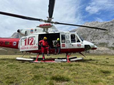 El Centro de Atención a Emergencias de Cantabria 112 movilizó al helicóptero, desde el que se realizó una maniobra con grúa muy larga para arriar al rescatador hasta la zona donde estaba el montañero, al que logró poner el arnés y ambos fueron izados a la aeronave.