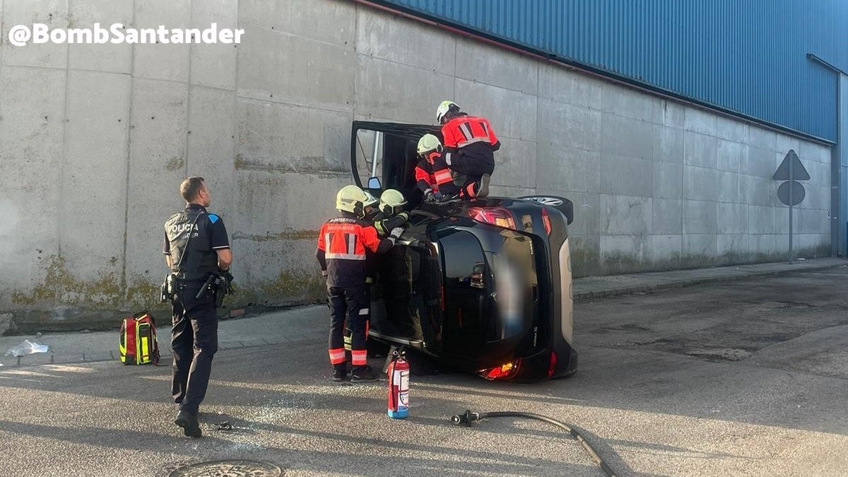 Un conductor de 29 años de edad y una pasajera de 35 han tenido que ser excarcelados por los bomberos del vehículo en el que viajaban tras chocar contra otro turismo y sufrir un vuelco lateral en Santander.