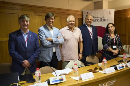 El rector de la UIMP, Carlos Andradas, y el catedrático de Relaciones Internacionales y director de la Fundación Carolina, José Antonio Sanahuja, también han participado en este coloquio en el que se han abordado diversas cuestiones sobre la actualidad de unas relaciones que vivieron «un nuevo hito» en la cumbre entre la UE y la Comunidad de Estados de América Latina y el Caribe (CELAC) celebrada los días 17 y 18 de julio en Bruselas.