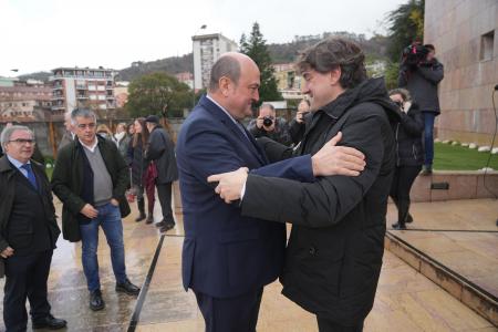 Acompañado del burukide Joseba Aurrekoetxea, Ortuzar se ha acercado hasta la capilla ardiente con los restos mortales de Ares donde ha saludado afectuosamente tanto al líder de los socialistas vascos, Eneko Andueza, como al secretario de Organización, Santos Cerdán.