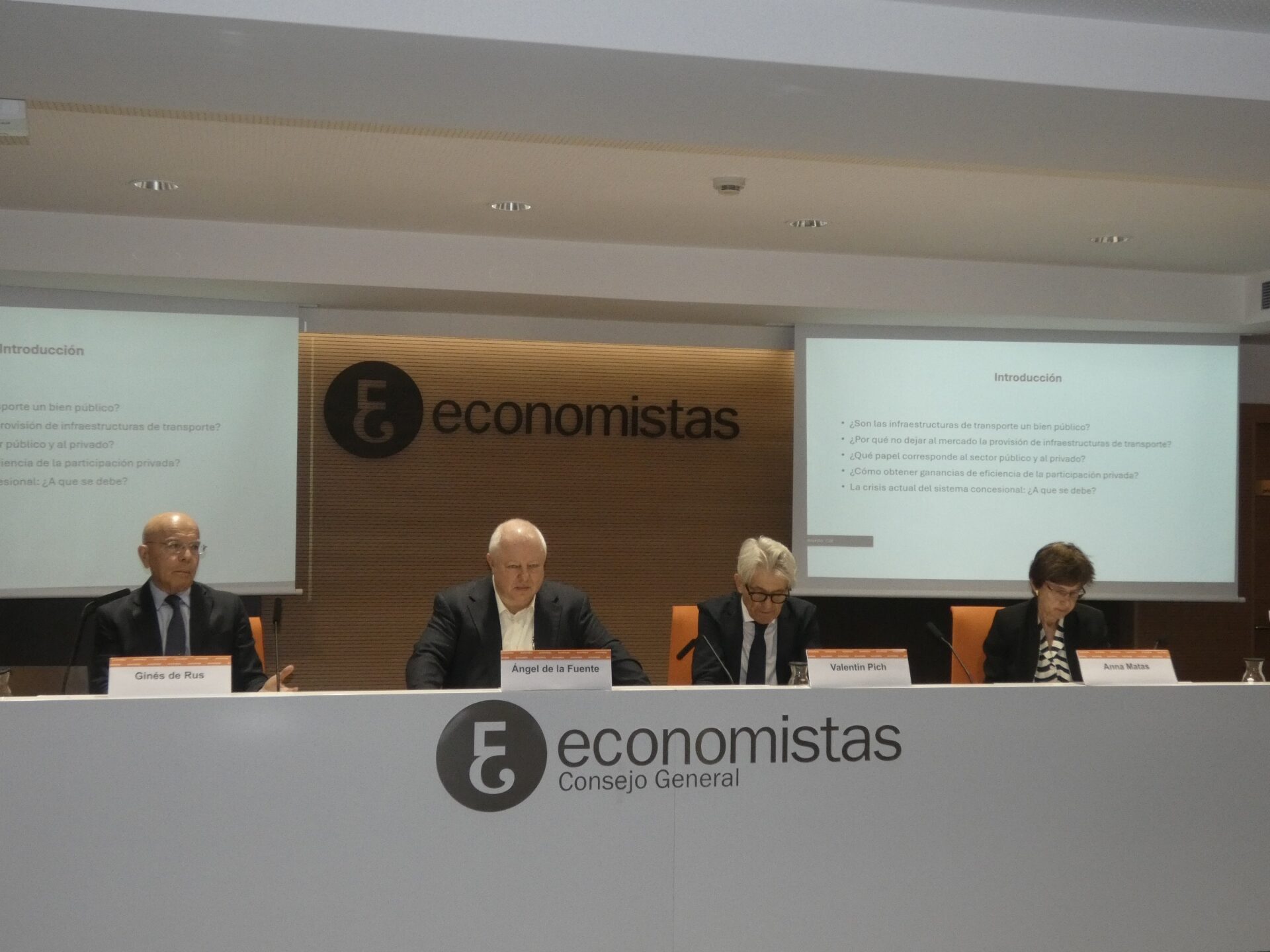 El Consejo General de Economistas y Fedea han celebrado este martes una sesión titulada Infraestructuras del transporte: desarrollo actual y posibilidades de futuro , con objeto de analizar en profundidad las distintas variables, tanto cuantitativas como cualitativas, que hacen que a pesar de que España sea el segundo país del mundo con la red más extensa de vías para trenes de alta velocidad y el tercero con más autopistas y autovías, esta situación no se traduzca en una clara ventaja competitiva para el país, e intentar aportar ideas para su mejora.
