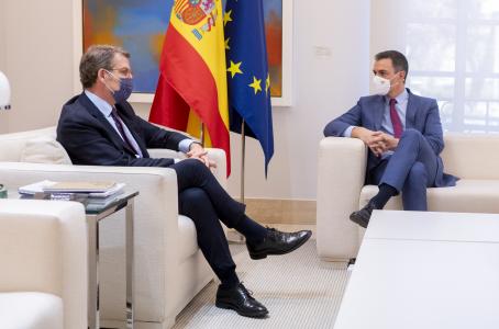 Tras tres horas de reunión con Sánchez, Feijóo ha explicado que el presidente le había trasladado su interés por renovar el CGPJ y el Tribunal Constitucional y han acordado en retomar estas conversaciones además de una manera «rápida».