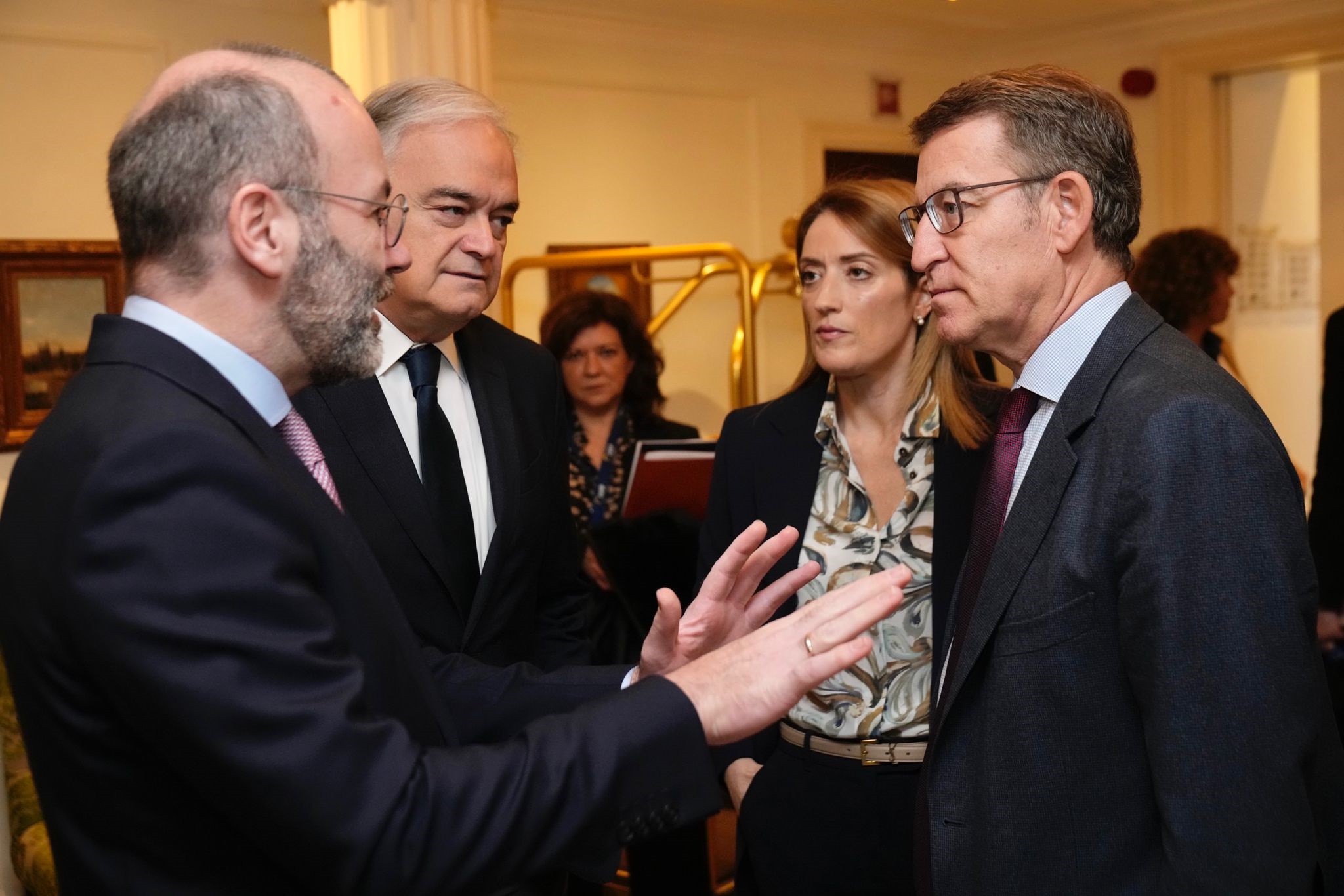 Por otra parte, Feijóo ha revelado que los dirigentes europeos del PPE están «francamente preocupados» por la situación española, inédita en «45 años de democracia». Así, ha indicado que España «está abandonando en los últimos años el camino de la moderación, la Constitución y los ideales europeos y ha añadido que la Unión Europea está «comprobando que el único objetivo de Sánchez es mantenerse en el poder, cueste lo que cueste».