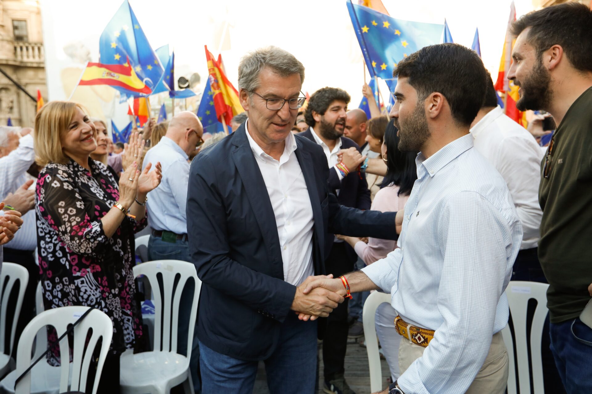 «Si dispersamos no tendremos fuerza, si concentramos somos imbatibles. Por eso, movilizándonos y concentrando el voto, el 9 de junio vamos a dar una respuesta», ha proclamado Feijóo en un acto electoral en la Plaza del Cardenal Belluga de Murcia junto al presidente del PP de la Región de Murcia, Fernando López Miras, y la candidata al Parlamento europeo por esta comunidad, Maravillas Abadía, que ocupa el puesto 22 en la lista.