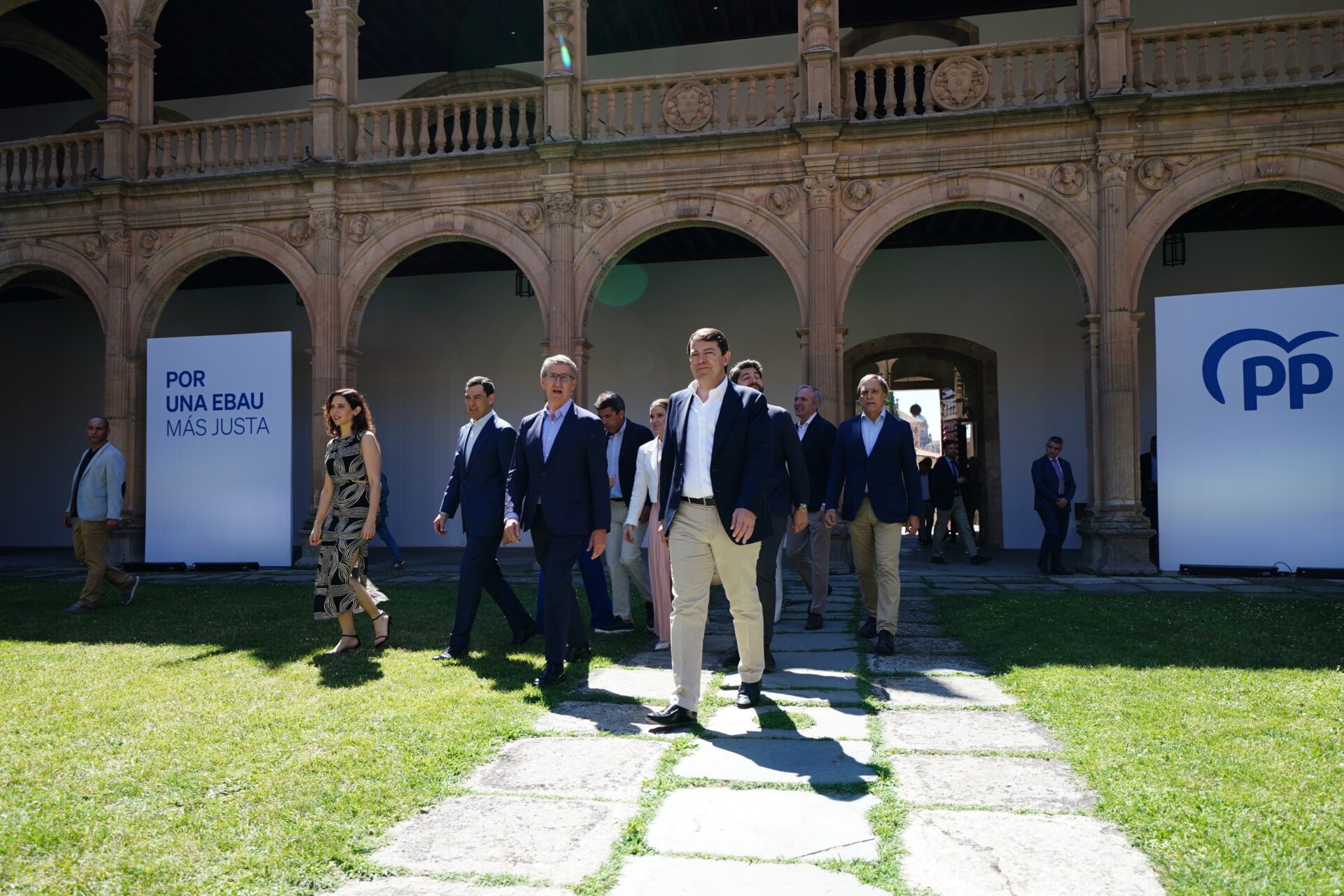 En el acto sobre la EBAU, Feijóo ha afirmado que el Gobierno «malvive con una débil mayoría, condicionado por decenas de partidos» y «cada día se le caen más apoyos» mientras que las comunidades del Partido Popular «gobiernan con mayorías y con estabilidad».