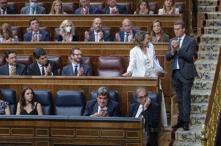 Feijóo ha asistido al hemiciclo del Congreso, donde ha ocupado por primera vez el primer escaño del Grupo Popular en el que hasta hace cuatro meses se sentaba Pablo Casado, pero ha dejado todo el protagonismo a la secretaria general y portavoz del Grupo Popular, Cuca Gamarra, dado que él no podía intervenir desde la tribuna de oradores.