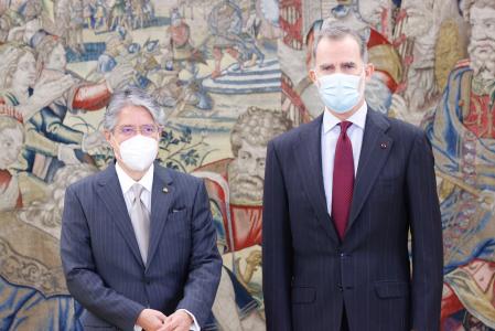 El Rey Felipe VI ha recibido este jueves en el Palacio de la Zarzuela al presidente de Ecuador, Guillermo Lasso, en el inicio de su visita de trabajo, la primera que realiza a España desde que llegó al cargo el pasado mes de mayo.