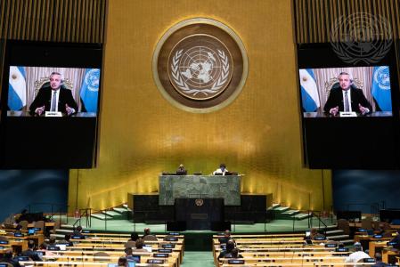 El presidente de Argentina, Alberto Fernández, ha comparecido en la Asamblea General de las Naciones Unidas y ha lamentado que su país «ha sido sometido a un endeudamiento tóxico e irresponsable con el Fondo Monetario Internacional (FMI)» respecto a la deuda externa.