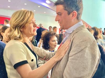 El candidato la Alcaldía recibe el respaldo de la ministra de Educación, Pilar Alegría, en la Conferencia Municipal del PSOE