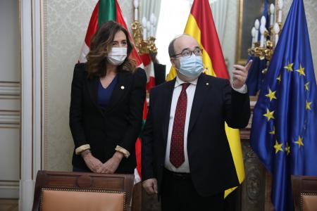 «En general vamos a buen ritmo», ha asegurado Iceta tras su encuentro con la consejera vasca, el primero con una representante autonómica de manera presencial desde que tomó posesión como nuevo ministro. Además, ha señalado que el Gobierno central y el vasco seguirán trabajando para proceder a los traspasos acordados.