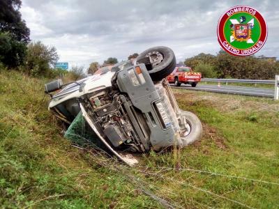 Herido el conductor de un camión tras volcar en la N-634 a la altura de Castro Urdiales