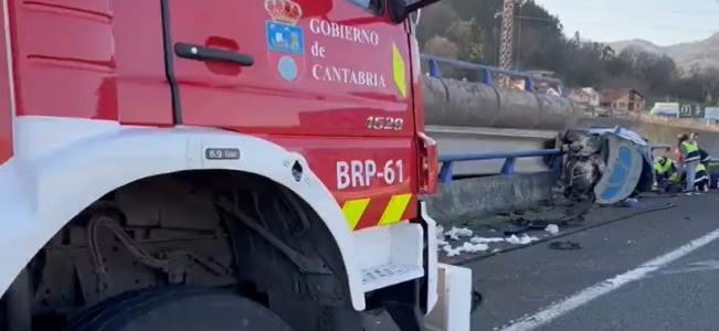 Desde el 112 se ha informado que el accidente ha tenido lugar a la altura del kilómetro 171 de la A-67 a su paso por este municipio y ha obligado a intervenir a bomberos, Guardia Civil, 061 y Carreteras.