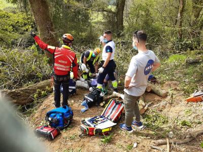 Un hombre de 63 años, vecino de Güemes, ha sufrido heridas de gravedad en una pierna, con fractura abierta de tibia y peroné, al caerle encima el tronco de un árbol cuando realizaba labores de talado en una pista forestal de Bareyo.