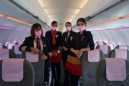 Además, la aerolínea se suma al rosa con la instalación, en uno de sus aviones, de cabezales conmemorativos de color rosa, así como el uso de este color a lo largo del día 19 de octubre.