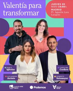El exlíder y cofundador de Podemos, Pablo Iglesias, apoyará en un mitin el jueves en Lavapiés a los candidatos de su partido a la Comunidad de Madrid y el Ayuntamiento, Alejandra Jacinto y Roberto Sotomayor, mientras que las ministras Ione Belarra e Irene Montero harán lo mismo en el mitin de fin de campaña madrileño.
