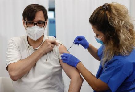 Illa (PSC) recibe la primera dosis de la vacuna en Fira de Barcelona