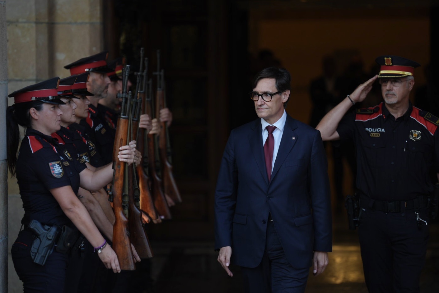 El nuevo presidente de la Generalitat, Salvador Illa, ha abandonado el Parlament sobre las 20.25 tras saludar a su antecesor Pere Aragonès y pasar revista al cuerpo de guardia del Parlament de los Mossos d Esquadra.