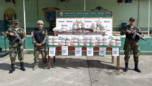 El Ministerio del Interior de Perú ha informado de la incautación de 617,9 kilogramos de alcaloide de cocaína en una operación de la Policía Nacional peruana en dos ubicaciones de la región del valle de los ríos Apurímac, Ene y Mantaro (VRAEM).