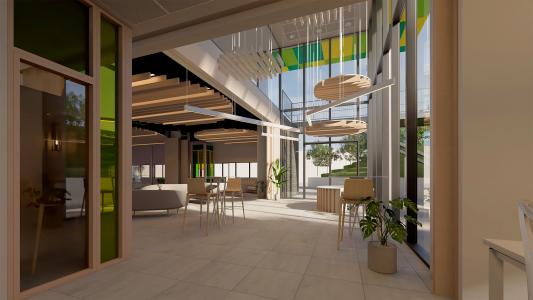 Las salas destinadas a coworking y espacio multiusos ocupan una superficie de 500 metros cuadrados. El espacio de co-working contará con 17 puestos de trabajo fijos, tres salas de reuniones con dos capacidades distintas, una grande y dos más pequeñas, todas equipadas con instalación eléctrica, iluminación, instalación de voz y datos, instalación para video llamadas y una pantalla de TV para presentaciones.