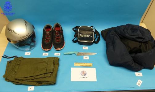 Los agentes consiguieron recuperar el cuchillo, así como las prendas y los efectos utilizados en el atraco al banco.
