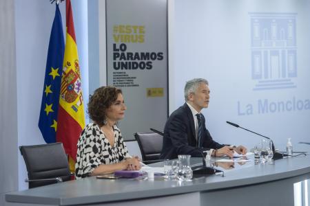 «Igual de beligerantes que vamos a ser en la defensa de nuestras fronteras de Ceuta, lo seremos en la repulsa y persecución de los discursos de odio», ha dicho Marlaska en su primera intervención junto a la ministra Portavoz, María Jesús Montero, en alusión a los mensajes que se han trasladado en las últimas horas desde Vox.