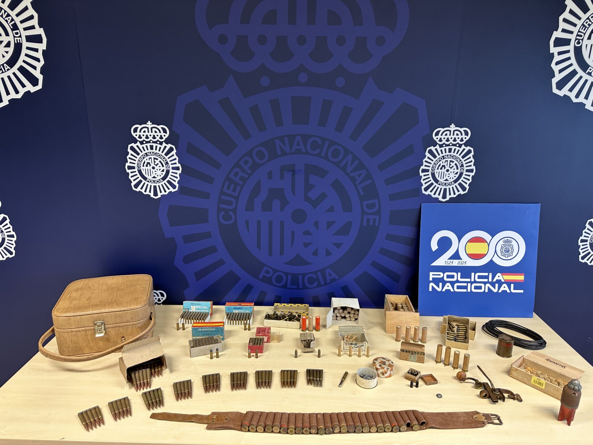 Los policías comprobaron que efectivamente la maleta contenía más de 400 cartuchos de diferentes calibres, más de 100 vainas vacías, un utensilio de recarga de cartuchos, varios trozos de plomo, un cinturón porta munición y otros elementos explosivos, por lo que avisaron a los agente expertos en manipulación de explosivos.