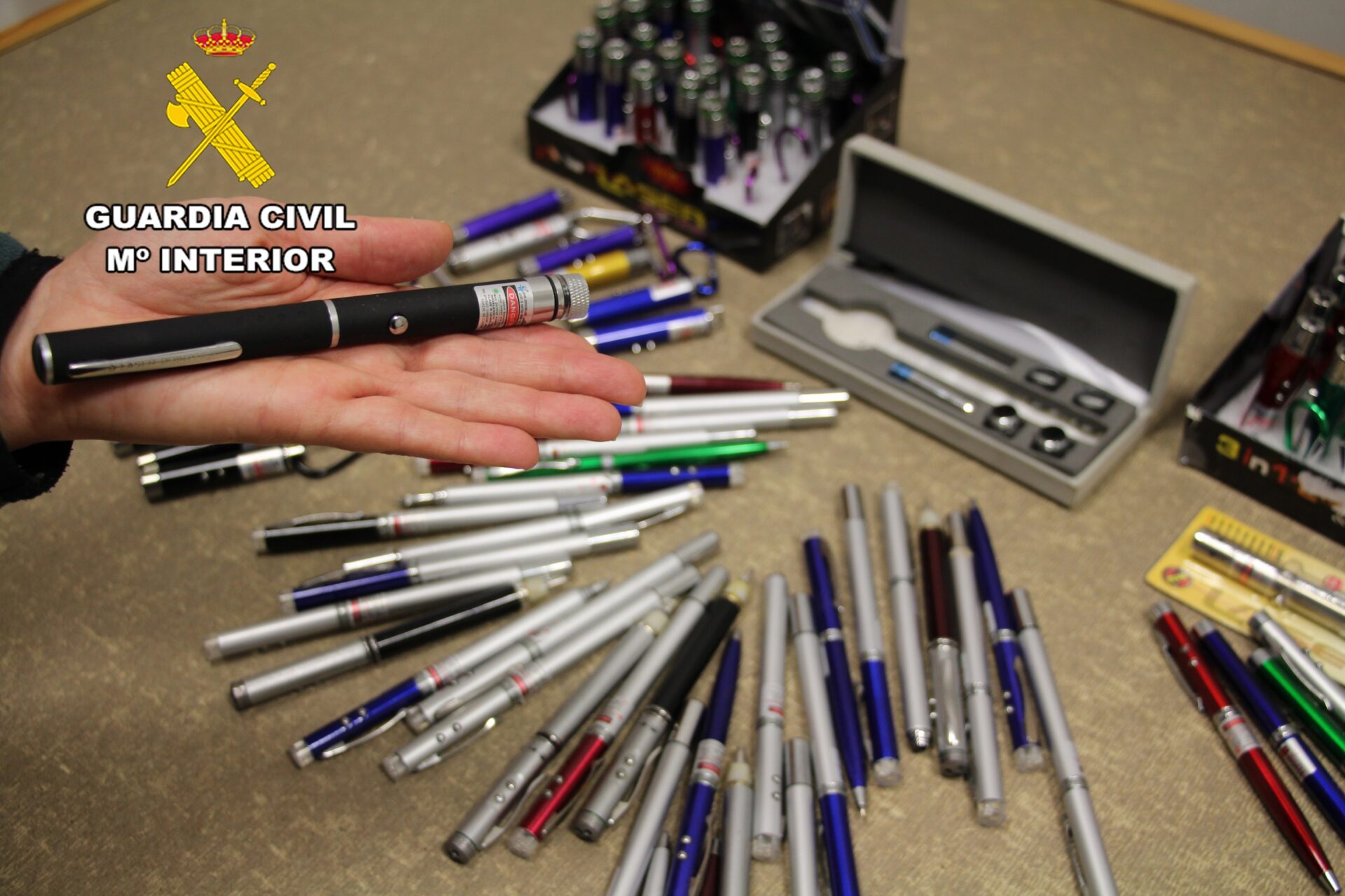 La Guardia Civil ha informado en un comunicado de esta intervención de punteros láser en el marco de más de 30 inspecciones realizadas en los últimos días por las patrullas fiscales y de fronteras del cuerpo para la represión del contrabando y para garantizar el licito comercio y seguridad de los productos en venta.