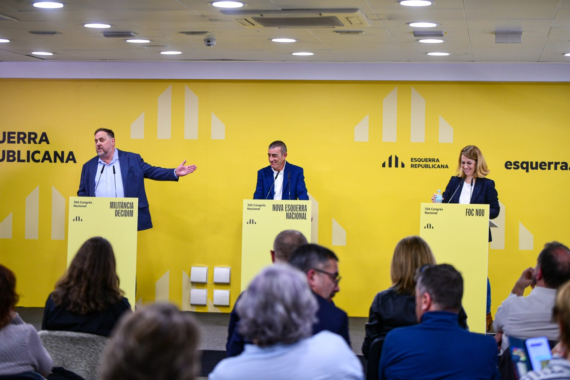 La candidatura de Junqueras, Militància Decidim , logró el 48,3% de los votos de la militancia en la primera vuelta del congreso, seguida por la lista de Godàs, Nova Esquerra Nacional , con un 35,3%, y Foc Nou , que quedó tercera con un 12,6% de los votos y fuera del proceso congresual.