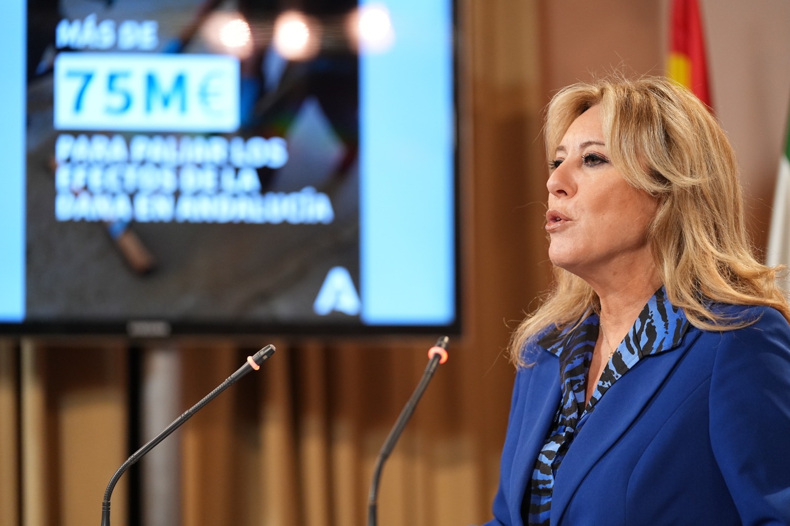 En rueda de prensa, la consejera de Economía, Hacienda y Fondos Europeos y portavoz del Ejecutivo andaluz, Carolina España, ha dado cuenta de los acuerdos adoptados en el Consejo de Gobierno, que, por primera vez, ha activado el decreto DANA, desde que se aprobó en diciembre de 2023.