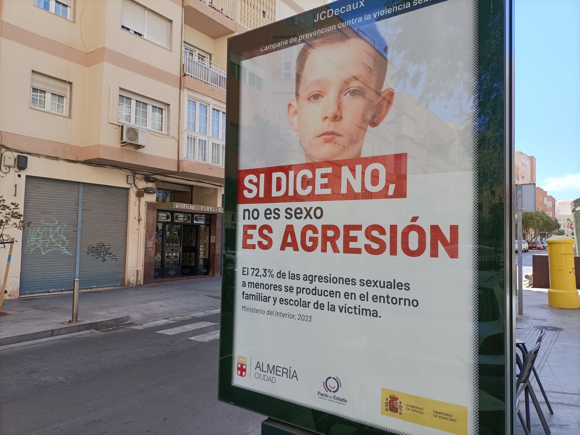 En concreto, el cartel de Almería pertenecía a una campaña contra las agresiones sexuales a menores y contenía en su cabecera la imagen de un niño bajo el que rezaba el mensaje Si dice no, no es sexo es agresión . Este incluía los logotipos del Ayuntamiento de Almería, del Pacto de Estado contra la Violencia de Género y del Gobierno de España – Ministerio del Igualdad.