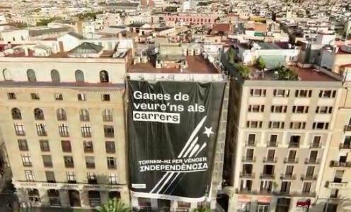 La pancarta ocupa toda la fachada de un edificio de unos seis pisos, mide 336 metros cuadrados y está situada en una de las calles por las que pasará la manifestación independentista organizada por la ANC, donde permanecerá colgada hasta el día de la movilización.