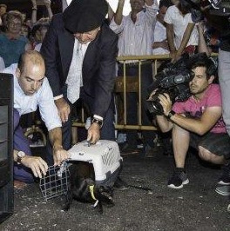 Aunque ha señalado que «afortunadamente, tras varias denuncias, la fiesta se ha suavizado porque años atrás el felino era transportado dentro de un saco y lanzado al público, desde más de dos metros de altura y, en su escapatoria, sufría diversas patadas».