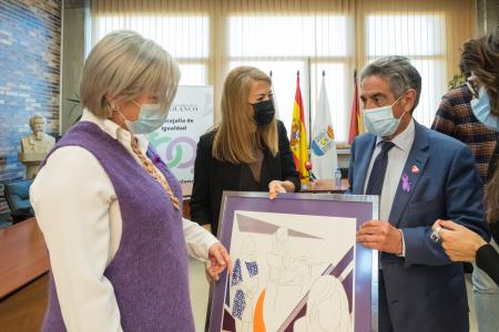 El galardón consiste en una lámina del pintor cántabro Pedro Sobrado que el propio Miguel Ángel Revilla ha entregado a Irene Pelayo.
