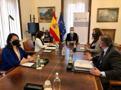La presidenta de la AVT, Maite Araluce, ha encabezado la representación en este encuentro en el que, según Interior, se ha puesto en valor que el departamento dirigido por Marlaska es el primero que informa sobre cada uno de los traslados de etarras.