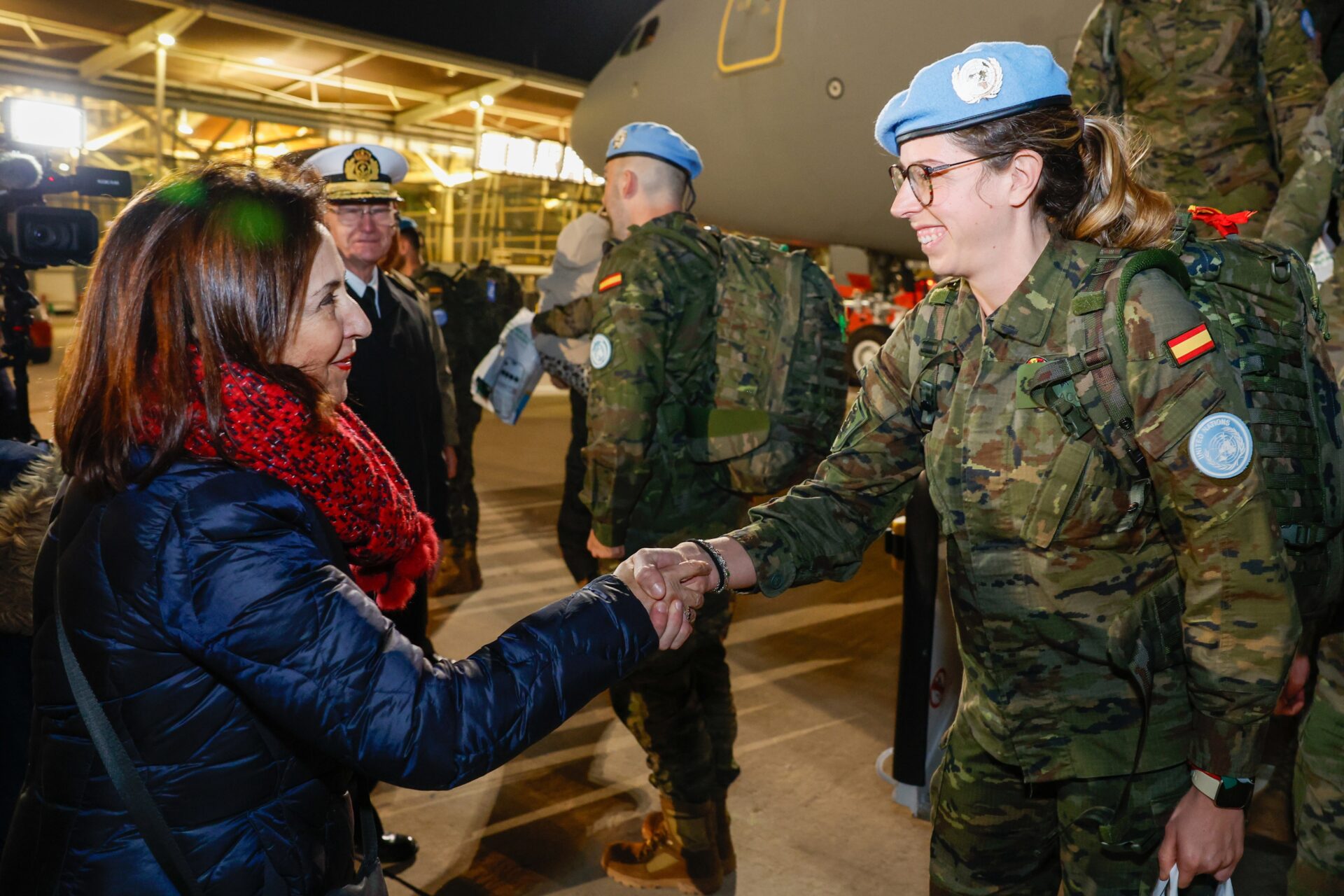 A su llegada esta pasad anoche al aeródromo zaragozano, los militares han sido recibidos por la ministra de Defensa, Margarita Robles, el jefe del Estado Mayor de la Defensa, almirante general Teodoro E. López Calderón, así como, por el jefe de Estado Mayor del Ejército de Tierra, el general de Ejército Amador Fernando Enseñat y Berea. También acudieron a recibirles numerosos familiares y amigos.