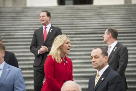Antes de la votación, Greene se ha defendido distanciándose de la teoría de la conspiración QAnon, con la que se la ha relacionado, y asegurando que dijo cosas de las que se arrepiente.
