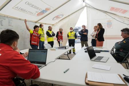 La consejera de Presidencia, Interior, Justicia y Acción Exterior, Paula Fernández Viaña, ha acudido al puesto de mando avanzado habilitado en el pabellón de Hinojedo (Suances) para seguir este ejercicio, incluido en la puesta en práctica del plan de emergencia exterior de una de las factorías ubicadas en la localidad.