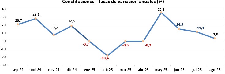 En términos absolutos, en agosto fueron constituidas 7.156 empresas en el conjunto de España, frente a las 6.948 registradas en el mismo mes de 2024.