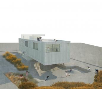 También tendrá sala de proyecciones para 50 personas, un espacio de juegos para, una sala de usos múltiples, una piscina y zona de sol en cubierta, una zona de sótano relacionada con actividades físicas como street skate, aseos y vestuarios y un rocódromo en la fachada